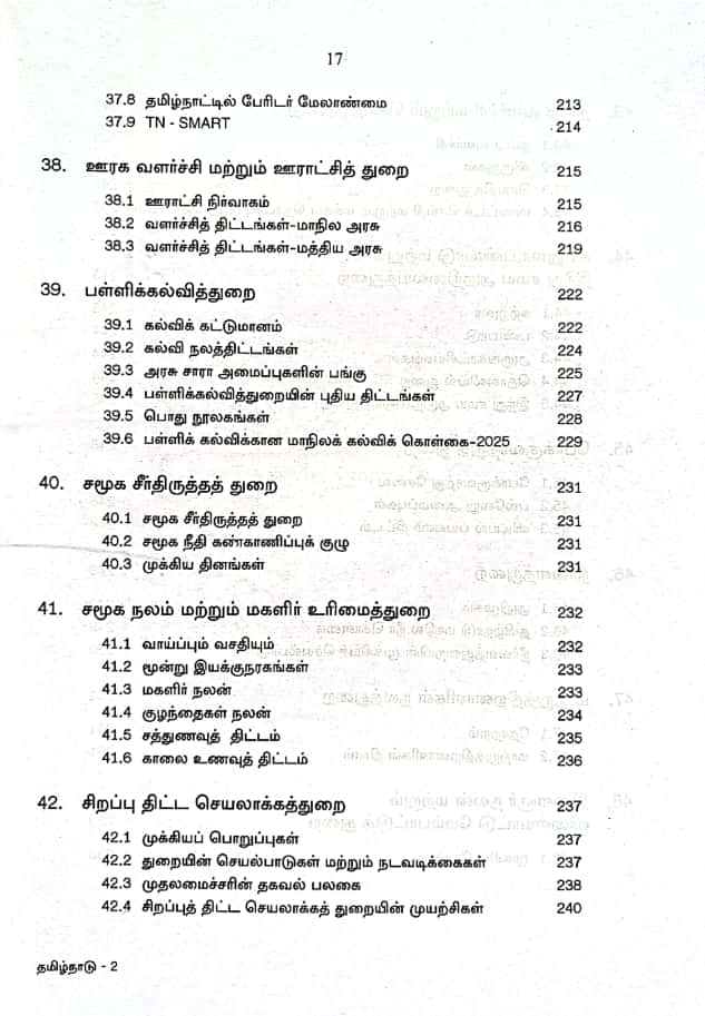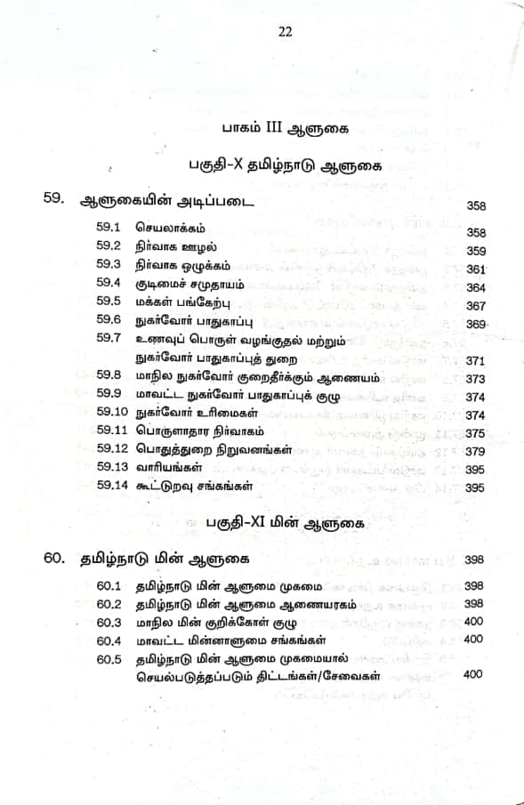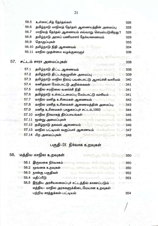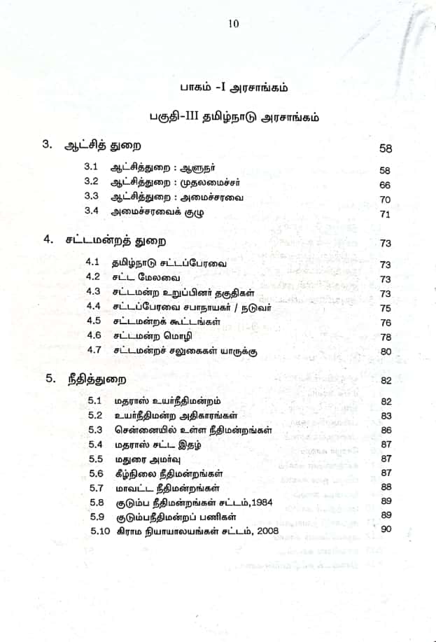 This is very very useful book for preparing the competitive exams conducted by the Tamil Nadu Public Service Commission for various Groups and Union Public Service Commission. This book is divided under three main parts namely Government, Administration and Governance of Tamil Nadu and under various chapters under each part, several useful details have been given regarding Tamil Nadu Government, Administration and Governance. In part 1 the three organs of government explained under headings Executive, Legislature and Judiciary. In part 2 the Administration, the Administration of Tamil Nadu, Government Departments (Revenue Department, School Education Department, Higher Education Department, Police Department, Rural Development and Panchayat Administration Department, Backward, Most Backward and Minority Welfare Department, Scheduled Caste and Scheduled Tribes Department, Law Department, Agricultural Department, Milk and Fishery Department, Commercial Tax and Registration Department etc). Given. Under Part 3, all administrations of Tamil Nadu Government given. This book is really a boon to those who are preparing for TNPSC and UPSC (Civil Services) Exams.