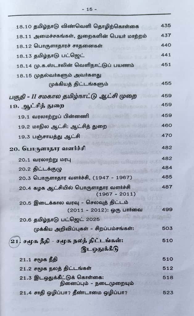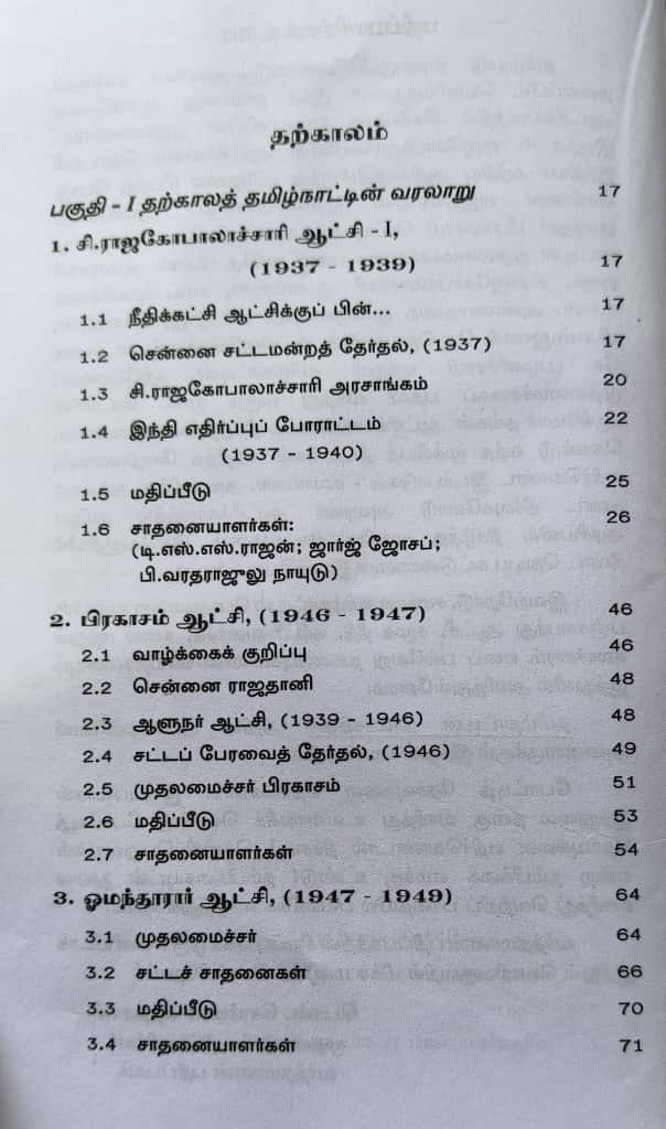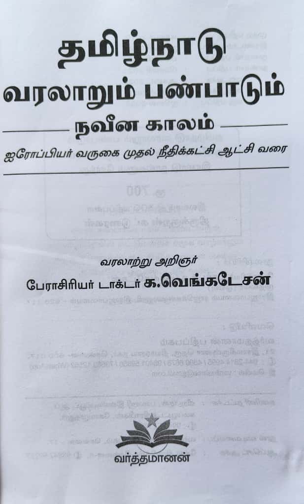 “தமிழ்நாடு வரலாறும் பண்பாடும்” என்ற பெருந்தலைப்பில் “நவீன காலம்”, “தற்காலம்” என்ற தொகுதிகளில் இந்நூல் வெளியாகியுள்ளது. பேராசிரியர் க.வெங்கடேசன் அவர்களின் படிப்படியான விளக்கத்தில் இந்த இரண்டு நூல்களும் அரசுப் பணிகளுக்கான தேர்வுகளுக்கு தயாராகி வரும் தேர்வர்களை தட்டி எழுப்பி தோள் கொடுக்கின்றது என்று சொன்னால் அது மிகையன்று. குறிப்பாக தமிழ்நாட்டு வரலாற்றை தற்காலம் வரையில் விளக்கும் தொகுதியில் தமிழ்நாட்டின் தற்போதைய முதல்வர் மாண்பு மிகு திரு ஸ்டாலின் ஆட்சி வரை விளக்கப்பட்டுள்ளது இவ்வெளியீட்டின் மணிமகுடம் என்று சொல்லலாம். தமிழ்நாட்டின் வரலாற்றையும் பண்பாட்டையும் “நவீன காலம்” என்ற தலைப்பில் விளக்கும் தொகுதி “ஐரோப்பியர் வருகை முதல் நீதிக்கட்சி ஆட்சி வரை” நீண்டு செல்கின்றது. அதாவது இத்தொகுதியில் மூன்று பகுதிகள் உள்ளன. அவை, (1) நவீன காலத் தமிழ்நாட்டு வரலாறு, (2) நவீனகாலப் போர்கள் – தமிழ்நாட்டில் ஆதிக்கப் போட்டி மற்றும் (3) இந்திய விடுதலைப் போராட்டத்தில் தமிழகம். இந்த முப்பகுதிகளிலும் தமிழ்நாட்டின் நவீனகாலம், சென்னையில் ஆங்கியலேயர், பாண்டிச்சேரியில் பிரெஞ்சுக்காரர், கர்நாடகத்தில் நவாபுகள், கர்நாடக போர்கள், ஆங்கிலேயரின் வெற்றிக்கான காரணங்கள், தமிழ்நாடும் மைசூர் போர்களும், ஆங்கியலேயரும் ஆர்க்காட்டு நவாபுகளும், பாளையக்காரர் கிளர்ச்சி, தென்னிந்திய கிளர்ச்சி, வேலூர் கிளர்ச்சி, கம்பெனி தமிழ்நாட்டைக் கைப்பற்றுதல் ஆகிய வரலாற்று சிறப்பு மிக்க நிகழ்ச்சிகள் ஆராய்ச்சிக் கண்ணோட்டத்துடன் ஆசிரியர் வெங்கடேசன் அணுகியுள்ளது சிறப்பு. மேலும் சமூக சீர்திருத்த இயக்கங்கள், வள்ளலாரின் சீர்திருத்த இயக்கம், இந்து சமய சீர்திருத்த இயக்கம் ஆகியவை பற்றியும், இந்திய விடுதலைப் போராட்டத்தில் தமிழ்நாட்டின் பங்கு, நீதிக்கட்சியின் தோற்றம் என விவரிக்கப்பட்டுள்ளது. அது போல “தற்காலம்” என்ற தலைப்பில் விளக்கும் தொகுதி “சி.ராஜகோபாலாச்சாரி ஆட்சி தொடங்கி மு.க.ஸ்டாலின் ஆட்சி (2021 – )” என தற்கால ஆட்சியை கட்டுரைகளாக படம் பிடித்து காட்டுகின்றது. இது பின்வரும் இரண்டு பகுதிகளாக பிரிக்கப்பட்டுள்ளது. (1) தற்காலத் தமிழ்நாட்டின் வரலாறு (2) சமகால தமிழ்நாட்டு ஆட்சி முறை தற்கால தமிழ்நாட்டின் வரலாறு என்ற முதற் பகுதியில் ஆங்கிலேயர் ஆட்சிக் காலத்தில் சென்னை ராஜதானியின் முதலமைச்சராக இருந்த சி.ராஜகோபாலாச்சாரியின் ஆட்சிக்காலம் தொடங்கி, இந்தியா அந்நிய ஆதிக்கத்திலிருந்து விடுதலை பெற்ற போது சென்னை ராஜதானியின் முதலமைச்சராக பதவியேற்ற ஓமந்தூர் பி.ராமசாமி ரெட்டியார் அவரைத் தொடர்ந்து தமிழ்நாட்டின் முதலமைச்சர்களாக பதவி வகித்த பி.எஸ்.கு
