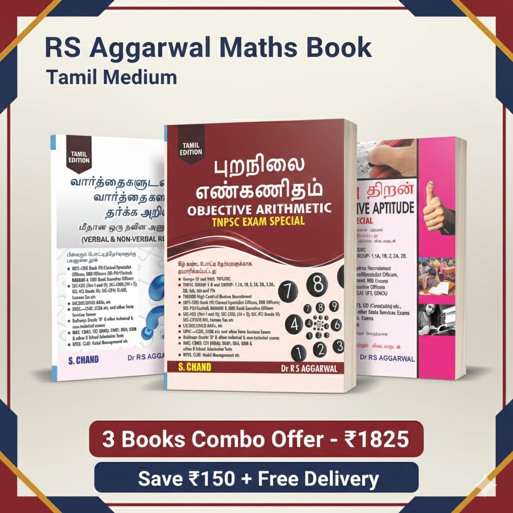 3 Books Combo Offer – Rs Agarawal – OBJECTIVE ARTHMETIC + QUANTITATIVE APTITUDE+ VERBAL & NON-VERBAL REASONING – Tamil Medium